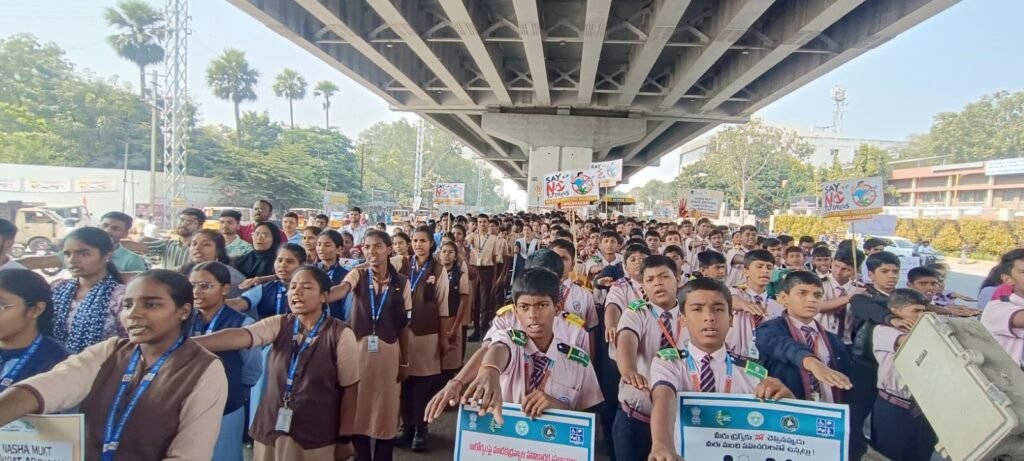 “నశా ముక్త్ భారత్”కు బాలానగర్లో ఘన ప్రమాణం: డ్రగ్స్ లేని సమాజ స్థాపనకు ప్రతిజ్ఞ”నశా ముక్త్ భారత్ అభియాన్” 5వ వార్షికోత్సవాన్ని పురస్కరించుకుని, బాలానగర్ పోలీస్ స్టేషన్ పరిధిలో సీఐ నర్సింహా రాజు ఆధ్వర్యంలో ఒక ప్రత్యేక కార్యక్రమాన్ని ఘనంగా నిర్వహించారు. దేశవ్యాప్తంగా యువతలో మాదకద్రవ్యాల దుర్వినియోగంపై అవగాహన కల్పించడం, వారి సృజనాత్మకతను ప్రోత్సహించడం, భవిష్యత్తును రక్షించడం లక్ష్యంగా ఈ కార్యక్రమం నిరంతరం కొనసాగుతోంది.ఈ కార్యక్రమంలో భాగంగా, బాలానగర్ నర్సాపూర్ క్రాస్ రోడ్స్ వద్ద బాలానగర్ డీసీపీ సురేష్ కుమార్, ఐపీఎస్, గారి పర్యవేక్షణలో “నశా ముక్త్ భారత్ అభియాన్” ప్రమాణ స్వీకార కార్యక్రమాన్ని నిర్వహించారు.ఈ సందర్భంగా డీసీపీ సురేష్ కుమార్ మాట్లాడుతూ… నశా ముక్త్ భారత్ అభియాన్ ప్రమాణాన్ని చదివించి, మాదకద్రవ్యాల నిర్మూలనలో ప్రతి ఒక్కరి పాత్ర ఎంతో కీలకమని పేర్కొన్నారు. యువత, తల్లిదండ్రులు, విద్యాసంస్థలు, సమాజంలో అవగాహన పెంపొందించడం ద్వారా భవిష్యత్ తరాలను రక్షించాల్సిన అవసరం ఉందని ఆయన ప్రత్యేకంగా వెల్లడించారు. అవగాహన, కఠిన చర్యలు, ప్రజల సక్రియ భాగస్వామ్యం ద్వారానే ‘నశా ముక్త భారత్’ నిర్మాణం సాధ్యమవుతుందని స్పష్టం చేశారు.అనంతరం బాలానగర్ ఏసీపీ నరేష్ రెడ్డి ప్రసంగిస్తూ… 2026 నాటికి తెలంగాణలో మాదకద్రవ్యాలను పూర్తిగా నిర్మూలించేందుకు పోలీసులు కట్టుబడి ఉన్నారని పేర్కొన్నారు. ఇందుకోసం ప్రచారాలు, శిక్షణ, పునరావాస చర్యలు, సమాజ భాగస్వామ్యాన్ని మరింత బలోపేతం చేయాల్సిన అవసరాన్ని ఆయన గుర్తు చేశారు.ఈ కీలక కార్యక్రమంలో బ్రైట్ కాన్సెప్ట్ హై స్కూల్, శ్రీ సాయి విద్యానికేతన్, బ్రైట్ స్కాలర్స్, సీఐటీడీ, నైపర్ విద్యార్థులు, స్థానికులు పెద్ద సంఖ్యలో పాల్గొన్నారు. వారందరూ మాదకద్రవ్యాలకు దూరంగా ఉండేందుకు, సమాజాన్ని ‘డ్రగ్-ఫ్రీ తెలంగాణ’ వైపు నడిపించేందుకు తమ వంతు సహకారం అందిస్తామని ప్రతిజ్ఞ చేశారు. ఈ అవలోకనం డ్రగ్స్ రహిత సమాజం కోసం సాగే పోరాటంలో ప్రజల భాగస్వామ్యాన్ని బలోపేతం చేసింది. ఈ కార్యక్రమంలో బాలానగర్ ట్రాఫిక్ సీఐ శ్రీనివాస్, జగద్గిరిగుట్ట సీఐ వెంకటేశం, బాలానగర్ ఎస్ఐలు సరితా రెడ్డి, హాజీ మియా, వినోద్ కుమార్, ఏఎస్ఐ హనుమయ్య ఇతర సిబ్బంది పాల్గొన్నారు.
