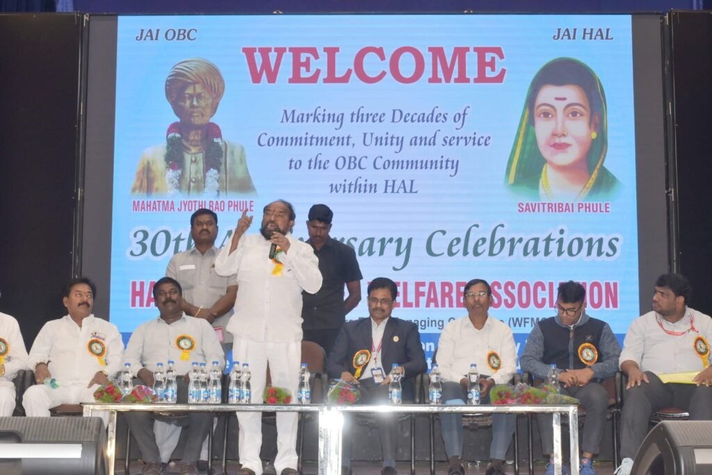 కూకట్ పల్లి నవంబర్ 22,ప్రభ: హెచ్ఏఎల్ (ఓబీసీ ఉద్యోగుల సంక్షేమ సంఘం 30వ ఆవిర్భావదినోత్సవ వేడుకలు హెచ్ఏఎల్ ఆడిటోరియంలో ఘనంగా జరిగాయి. దేశంలో ఓబీసీల హక్కులు, రిజర్వేషన్ల అంశంపై డిమాండ్లకు వేదికగా ఈ కార్యక్రమం నిలిచింది.సంఘం అధ్యక్షుడు రవి కుమార్ ముదిరాజ్ ఆధ్వర్యంలో జరిగిన ఈ వేడుకలకు ముఖ్య అతిథిగా రాజ్యసభ సభ్యులు ఆర్. కృష్ణయ్య హాజరై, హెచ్ఏఎల్ ఎగ్జిక్యూటివ్ డైరెక్టర్ డి. రామ్మోహన్ రావుతో కలిసి జ్యోతి ప్రజ్వలన చేసి ప్రారంభించారు.– కీలక డిమాండ్లపై దృష్టి…..సభనుద్దేశించి ఎంపీ ఆర్. కృష్ణయ్య మాట్లాడుతూ, కేంద్ర ప్రభుత్వ సేవలు, ప్రభుత్వ రంగ సంస్థల్లో (పీఎస్యూ) ఓబీసీలకు 27 శాతం రిజర్వేషన్ అమలులోకి వచ్చిన తర్వాత ఓబీసీ సంక్షేమ సంఘాల పాత్ర మరింత కీలకంగా మారిందని అన్నారు. ఉద్యోగుల సంక్షేమం కోసం హెచ్ఏఎల్ ఓబీసీ సంఘం చేస్తున్న సేవలను ఆయన కొనియాడారు. అయితే సంఘం నాయకులు కేవలం హెచ్ఏఎల్ ఉద్యోగుల ప్రయోజనాలకే కాకుండా దేశంలోని మొత్తం ఓబీసీ వర్గం సంక్షేమం కోసం పోరాడాలని సూచించారు. ఈ సందర్భంగా ఆయన మూడు కీలక డిమాండ్లను ప్రస్తావించారు. ఓబీసీలకు అన్యాయం చేస్తోన్న ‘క్రీమీలేయర్’ నిబంధనను తక్షణమే రద్దు చేయాలని డిమాండ్ చేశారు. వెనుకబడిన తరగతులకు (బీసీ) రిజర్వేషన్లను 42 శాతానికి పెంచాలని, ఈ కార్య సాధనకై అందరూ కలిసికట్టుగా పోరాడాలని కోరారు. ఉద్యోగుల పదోన్నతుల్లో రిజర్వేషన్ల కోటాను పెంచడానికి కృషి చేయాలని పిలుపునిచ్చారు.మహాత్మా జ్యోతిరావు పూలే విగ్రహాన్ని ఏర్పాటు చేసిన తొలి పీఎస్యూగా హైదరాబాద్లోని హెచ్ఏఎల్ ఏవియానిక్స్ విభాగం నిలిచిందని ఎంపీ కృష్ణయ్య అభినందించారు. ఈ వేడుకల్లో తెలంగాణ రాష్ట్ర ఓబీసీ ఉద్యోగుల ఫెడరేషన్ అధ్యక్షుడు దాన కర్ణచారి, ఏఐఓబీసీ ఉపాధ్యక్షుడు యు. చిన్నయ్య ముదిరాజ్, యూనియన్ అధ్యక్షుడు వెంకటాద్రి, సలహాదారులు రామచంద్రయ్య, జయేందర్ గౌడ్ సహా పలువురు ముఖ్యులు పాల్గొన్నారు. అలాగే, హెచ్ఏఎల్ ఎస్సీ, ఎస్టీ సంఘాల అధ్యక్షులు రమేష్ బాబు, చుడమణ్, ఆఫీసర్స్ అసోసియేషన్ అధ్యక్షుడు చంద్ర కుమార్, ప్రధాన కార్యదర్శి మధుసూదన్ హాజరై సంఘీభావాన్ని తెలిపారు. ఓబీసీ సంఘం కార్యవర్గ సభ్యులు చంద్రశేఖర్, అశోక్, భాగ్యలక్ష్మి, కెవి రవికుమార్, క్రాంతి, నాగరాజు, శాంతి, జోగారావు, భూపాల్, సుధాకర్ తదితరులు పాల్గొన్నారు.
